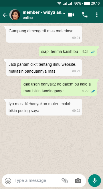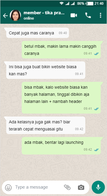 Sudahlah, saya berani jamin kalo ambil kelas Website Compro di tempat lain, anda cuma akan diajarkan wordpress + elementor yang digabung dengan hosting dan domain. Waktunya lama dan hasilnya belum tentu sesuai keinginan anda.