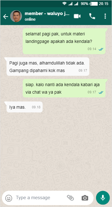 Anda akan dikontak privat oleh mentor untuk langsung pembelajaran step by step. dan juga bahan materi yang diperlukan