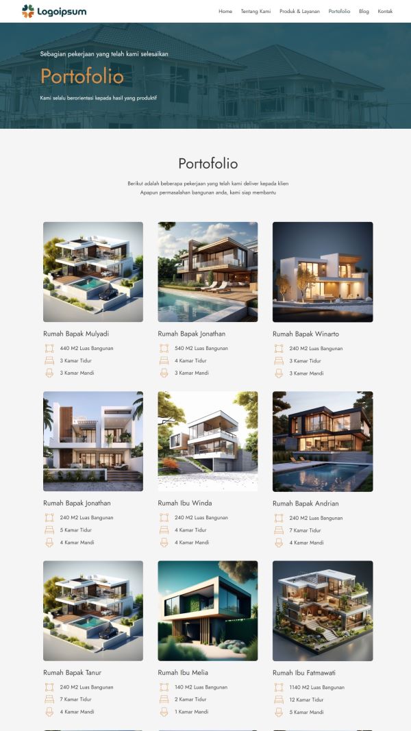 Di sini, kita mulai mendesain halaman Portofolio dengan berbagai section berikut secara detail