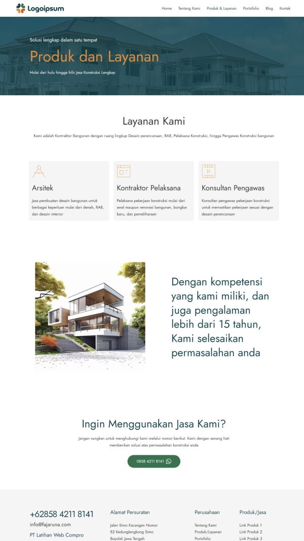 Di sini, kita mulai mendesain halaman Produk/Layanan dengan berbagai section berikut secara detail