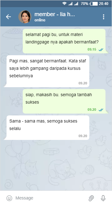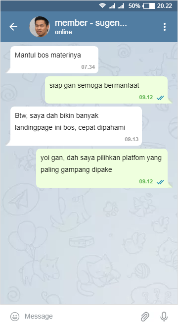 Selain whatsapp, kita juga akan praktek cara bikin testimony dalam bentuk screenshoot chat telegram.