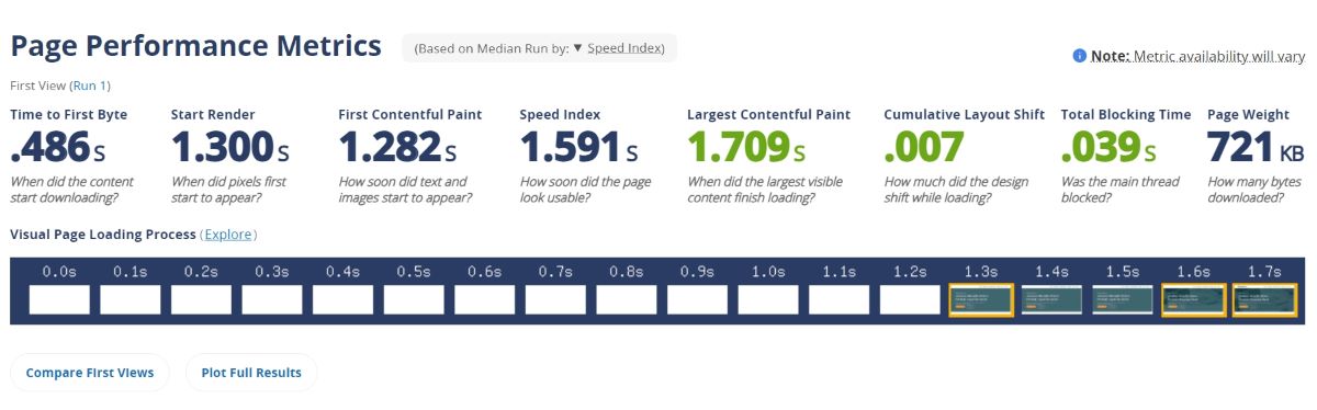 Seperti inilah performa website hasil dari pelatihan ini. Diakses cuma dalam watu 1,7 detik. Mudah dibuat, sangat cepat, dan indah